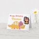 A bright and cute yellow/pink dinosaur 4th birthday card! You can personalize the design to add the name of the birthday boy/girl!