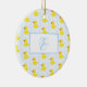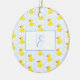 Add a cute touch to your holiday tree with this adorable and fun yellow duck pattern custom Christmas ornament. There are blue rain drops and a rectangle for the name of your baby girl or boy and monogram initial on the front and the year on the back.