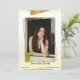 Simple and stylish, this cute gold artistic frame design features a soft yellow chevron with gold paint and glitter. A great way to announce any student's graduation to friends and family. Can also be used for birthday, quinceanera, baby showers and any other celebration.