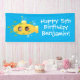 This happy yellow submarine is perfect for an under sea celebration! Drawn in cute cartoon illustration style on a blue background to celebrate a special day.