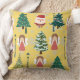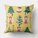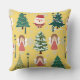 Cute yellow Xmas pattern girly l Santa and trees Throw Pillow