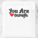 Indulge in self-affirmation and infuse your surroundings with positive vibes using this delightful "You Are Enough" Typography With Red Heart sticker. Meticulously created to uplift your spirits, this sticker features an enchanting typography design coupled with a vibrant red heart. Its versatile lightweight construction allows you to decorate a wide range of objects, such as phone cases, journals, or mirrors, with ease. By simply applying this heartfelt sticker, you'll be reminded that you are truly deserving, valued, and more than enough, making it an ideal gift or personal item to boost self-confidence and spread love.