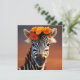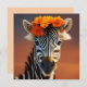 Cute black and white zebra wearing a halo of orange flowers in her hair.