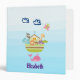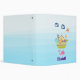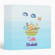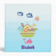 A personalized binder a cute nursery style illustration with an ark filled with wild animals and a butterfly flying overhead and a friendly whale spouting water below. Some blue clouds float on by. Set on a light blue ombre background.