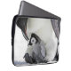 The sleeve is made of nice feeling material and seems very durable. I'm not sure how easy it'll be to clean, but the construction seems sound and the fabric is quick thick. I also like the double zipper. The printing is lovely and appears durable. The white on black contrast is nice, and the design very elegant.