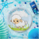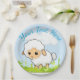 Cute little lamb on a green frame with butterflies, kawaii style!