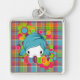 This custom key chain features a real cutie. An adorable little girl in pigtails surrounded by a rainbow of bubbles and flowers, this image is a smile waiting to happen. This keychain is a sweet and fun way to keep track of your keys. Buy one for yourself and as a gift today!