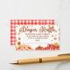 Gender-neutral autumn-themed baby shower "A Little Cutie Pie" is on the way, with watercolor illustrations of pies, pumpkins, fall leaves, and plaid napkins.