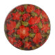 A painting in the Petrykivka style features vibrant red flowers and berries, depicted with intricate patterns and delicate brushstrokes. The flowers are large and symmetrical, surrounded by smaller floral elements and ornamental leaves. The berries, likely clusters of viburnum, are highlighted with fine detail, giving them a lifelike yet decorative appearance. The composition is arranged in a traditional Ukrainian manner, showcasing bright contrasts and a harmonious balance of colours on a white or light background. The artwork exemplifies the elegance and folk tradition of Petrykivka, celebrating nature and Ukrainian heritage.