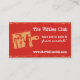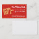 One fabulous red and orange cutting board with kitchen stuff, business cards for hip chefs who like to make a statement. Cutting board has rough edges, with whisk, fork, measuring spoons and olive oil can silhouettes in light ornage on a red background with rough edges.