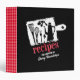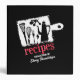 One fabulous black and white cutting board with kitchen stuff, and red plaid recipe cookbook notebook or binder for hip chefs who like to make a statement. Cutting board has rough edges, with whisk, fork, measuring spoons and olive oil can silhouettes and a big "recipes" in red plaid. You can customize the spine and the name on the front.