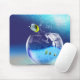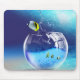 Ce tapis de souris a une image d'une cuvette de poissons se reposant au fond de l'océan là-dessus.
