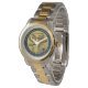 Very good quality watch that looks good whether dressing up or down. The band is sturdy. The watch is rather large so might not work for smaller folks. Recommended as a good gift. Printing is just a touch light but adds a nice touch of personalization.