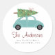 Cyan Holiday Car with Christmas Tree Address Classic Round Sticker