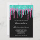 Cyan Hot Pink Glitter Drips Black Quinceañera Invitation