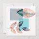 Modern design with squares and leaves in contrasting cyan, red, and orange colours.