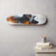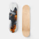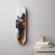 This futuristic skateboard deck design showcases the striking profile of a sleek black cat with vivid orange eyes, contrasted against a white background. The cat’s fur is intricately detailed, with its gaze exuding intelligence and mystery. Surrounding the feline is an abstract fusion of orange and black geometric patterns, evoking a high-tech, cyberpunk aesthetic. Fine lines and grid-like structures, reminiscent of engineering blueprints, add a technical and modern dimension to the artwork. Crafted with the help of AI, this piece blends digital precision with artistic flair, creating a captivating design that celebrates both technology and nature. Perfect for skateboarders, tech enthusiasts, and art collectors, this deck stands out as a bold statement of innovation and style.