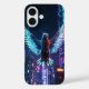 Futuristic neon griffin flying over a glowing cityscape. A striking mix of cyberpunk and fantasy for unique mythical creature artwork.