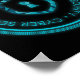 Lock and key in the center of the Cyber Security seal. Diamonds in circular pattern.