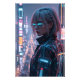 Cyberpunk Cityscape Poster Futuriste Femme Hacke