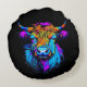 Cyberpunk Colourful Ai Highland Cow Round Pillow