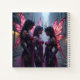 In the heart of a neon-lit cyberpunk city, three fairies stand out like living sparks of rebellion. Their wings, a striking crimson red, are not the delicate, gossamer kind of traditional fairies but instead are sleek and mechanical, with glowing circuits and metallic veins that pulse with energy. Each wing is a masterpiece of cybernetic design, blending organic beauty with futuristic technology.