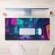 Cyberpunk Neon City Gamer Desk Setup Mat