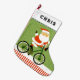 Creative cycling Christmas stocking holiday gift featuring Santa cyclist riding a bicycle. Edit text to add name.