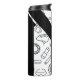 insulated bottle with drawing of cyclist components, parts and accessories. ( bezel / helmet / padlock / counter / pedals / dresses / keys / tools / multitools / saddle / fork / pignon / gloves / lights / chain / pedal / gourde )