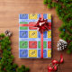 This wrapping paper is ready for personalization with your custom text and name (in blue). The design has a tiled pattern of four colourful icons (red, yellow, green and blue) with the silhouette of a cyclist.