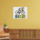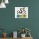 Cycling Cyclist design shows a cool stick figure cyclist riding a racing bicycle at full speed with large BIKE lettering below. Hand drawn cycling graphic for enthusiastic pedal pushers.