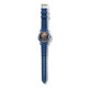 Cycling Life, retro painting in orange and blue of a cyclist riding through the mountains and forest with the sun in the background