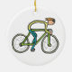 Cycling design shows a cool stick figure cyclist riding a racing bicycle at full speed. Hand drawn cycling graphic for fun, fitness and competition.