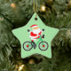 Creative cyclist Christmas collectable ornament featuring funny cycling Santa Claus riding a bike. To personalize edit text to add his or her name and the year.