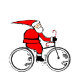Fun biking Christmas greeting card featuring a cycling Santa Claus cyclist riding a bicycle and the words: dashing through the snow. To easily personalize, edit text.
