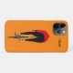 Stylish minimalist illustration of a cyclist viewed from behind, wearing a red jacket and riding a bike against a vivid orange background. This bold and dynamic iPhone case design captures the spirit of motion and energy, perfect for cycling enthusiasts and lovers of modern art.
