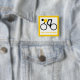Cyclist riding his bicycle custombutton that displays a minimalist icon of a black cycling silhouette wearing yellow top and your text on white background with yellow border. Personalize it and change text with monogram, name or your message. The perfect gift for those bicycling athletes or just biking lovers in your life.