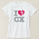 Ladies 'I heart Cyclocross' t shirt with gray text, red/pink heart and female cyclocross rider. Cyclocross is for anyone who loves to cycle and loves to get muddy. A great winter sport with a superb scene this apre race CX T Shirt is the perfect gift for the 'cross racer.