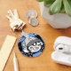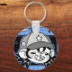 A playful cartoon illustration of a one-eyed character wearing a propeller hat with star motifs, set against a blue grid background.