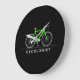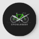 Cycologist text with neon green bicycle large clock