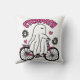 Cycopath Halloween Ghost on Pink Bicycle Throw Pillow