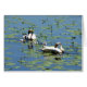 Les cygnes trompettes et leurs cygnets en nénuphar.