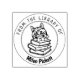 This "From the Library Of" rubber stamp features a Cymric cat with books and custom name.