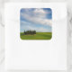 Photo autocollant d'un groupe de cyprès dans un paysage de collines vertes et de fleurs jaunes sous de beaux nuages blancs près de Torrenieri dans le Val d'Orcia (vallée de l'Orcia) en Toscane, Italie.