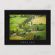 Carte postale d'un zigzag sinueux, cyprès bordée route à travers les champs verts à Monticchiello, Toscane en Italie avec une frontière noire et le texte : 'Toscane', Toscane en italien.