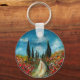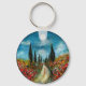 CYPRESS TREES AND POPPIES IN TUSCANY ROUND KEYCHAIN