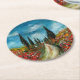 CYPRESS TREES AND POPPIES IN TUSCANY ROUND ROUND PAPER COASTER