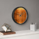 The size of the clock is dramatic and the abstract alcohol ink design is soothing and intricate at the same time. I chose the black frame that adds pop to the blue and gold design. The gold printing would be better in a slightly darker or larger font. I love it and I’m looking for just the right place in ny new apartment. I would recommend this clock for a personal gift or a present. I feel that the quality is excellent for the money! I’m a bit of a clock nut so I’m pretty particular about my purchases. The clock is larger in diameter than many if the clocks I have, so it stands out very well. I think a slightly darker printing color and a moderately larger size would best suit a professional decor or add more impact in a work place item.