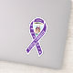 Show support for a little one fighting cystic fibrosis with this purple ribbon awareness sticker. Design features the purple ribbon symbol with the child's photo in the centre, and customizable white text on the top and front loop of the ribbon. Shown with the child's name and "cystic fibrosis." The other loop of the ribbon is adorned with small white butterflies.