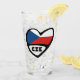 A cool, cartoon style heart design with the flag and the 3 letter country code of the country.